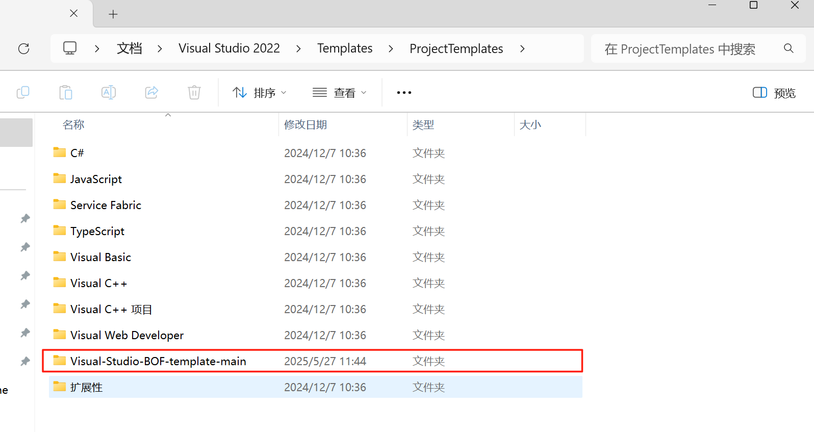 %UserProfile%\Documents\Visual Studio 2022\Templates\ProjectTemplates- 重启 VS